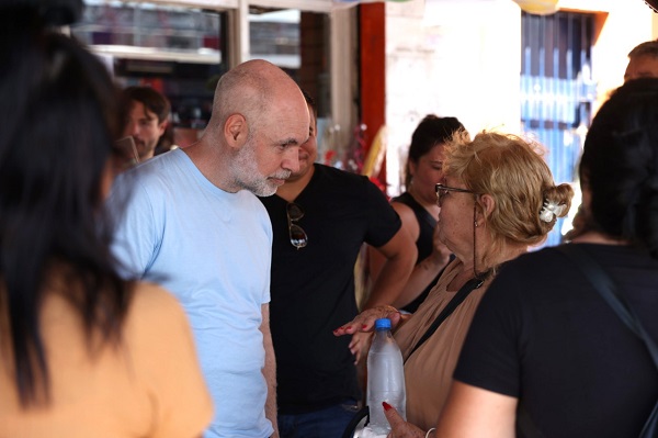 Rodríguez Larreta también caminó por el centro de González Catán para ver el estado del espacio público y hablar con comerciantes. “Les pedí que no se resignen; que se puede. Para frenar la inseguridad en la provincia de Buenos Aires se necesita decisión política y un plan”, continuó.