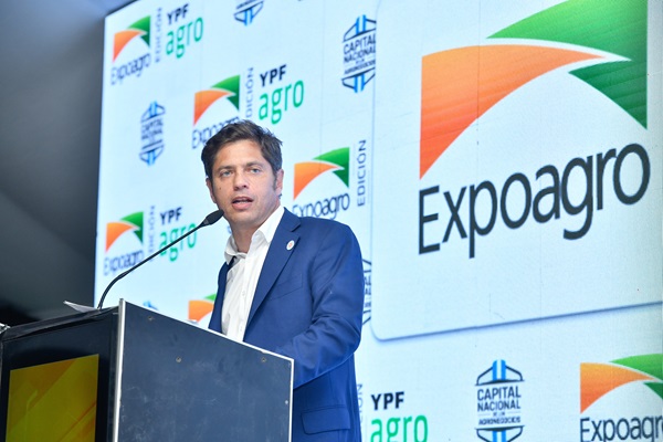 El gobernador de la provincia de Buenos Aires, Axel Kicillof, participó este lunes en San Nicolás de la cena de inauguración de Expoagro 2024 – Edición YPF Agro, evento que reunirá hasta el próximo 8 de marzo a los principales actores de la cadena agroindustrial. Fue junto a los ministros de Desarrollo Agrario, Javier Rodríguez; de Producción, Ciencia e Innovación Tecnológica, Augusto Costa; de Seguridad, Javier Alonso; y de Gobierno, Carlos Bianco; y el presidente del Banco Provincia, Juan Cuattromo.