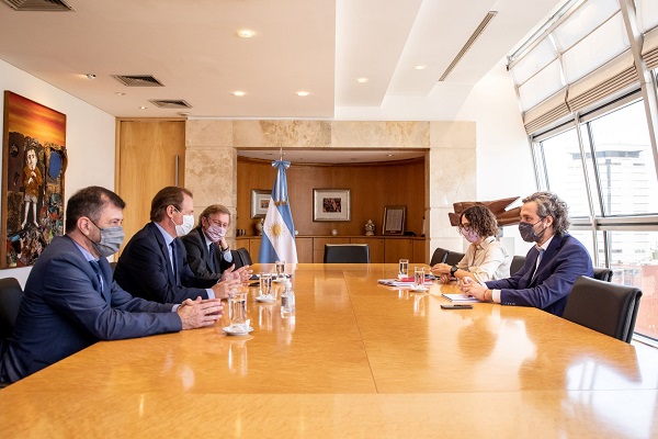 El canciller Santiago Cafiero recibió al gobernador de la provincia de Entre Ríos, Gustavo Bordet, con quien conversó sobre la estrategia de promoción de exportaciones de la provincia.