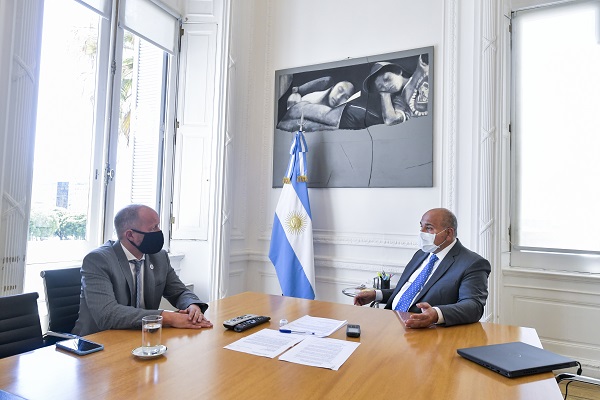 El canciller Santiago Cafiero y el secretario de la Pequeña y Mediana Empresa y los Emprendedores, Guillermo Merediz, analizaron el avance de los planes para que las PyMEs nacionales incrementen sus exportaciones, potenciando las capacidades locales en cada provincia argentina, reduciendo las brechas de productividad, incrementando la cantidad de PyMEs que exportan y promoviendo rondas de negocios en el extranjero a través del trabajo de las Embajadas argentinas en todo el mundo.