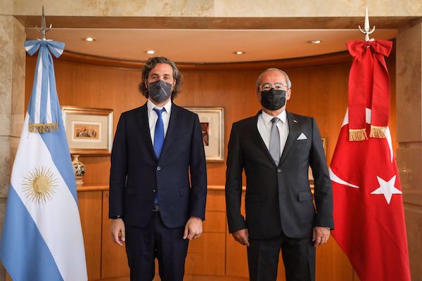 El canciller Santiago Cafiero mantuvo este jueves una reunión con el embajador de la República de Turquía en nuestro país, Şefik Vural Altay, a quien transmitió el interés de la Argentina de mantener y profundizar la cooperación bilateral en ámbitos como la ciencia y la tecnología, la educación y la cultura y los deportes, y de realizar acciones conjuntas para expandir los vínculos comerciales y económicos.
