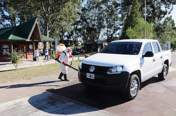 Desde el 8 de abril y por extensión de la cuarentena social y obligatoria, Monte Hermoso suma nuevas acciones preventivas con la desinfección de todo vehículo que llegue a la ciudad.