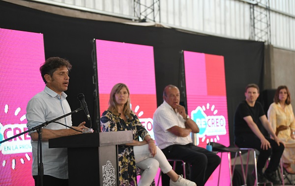 El gobernador de la provincia de Buenos Aires, Axel Kicillof, encabezó esta mañana el acto de inauguración del puente “La Unión” en el municipio de Ensenada, junto al intendente local, Mario Secco, y el subsecretario de Recursos Hídricos, Guillermo Jelinski.