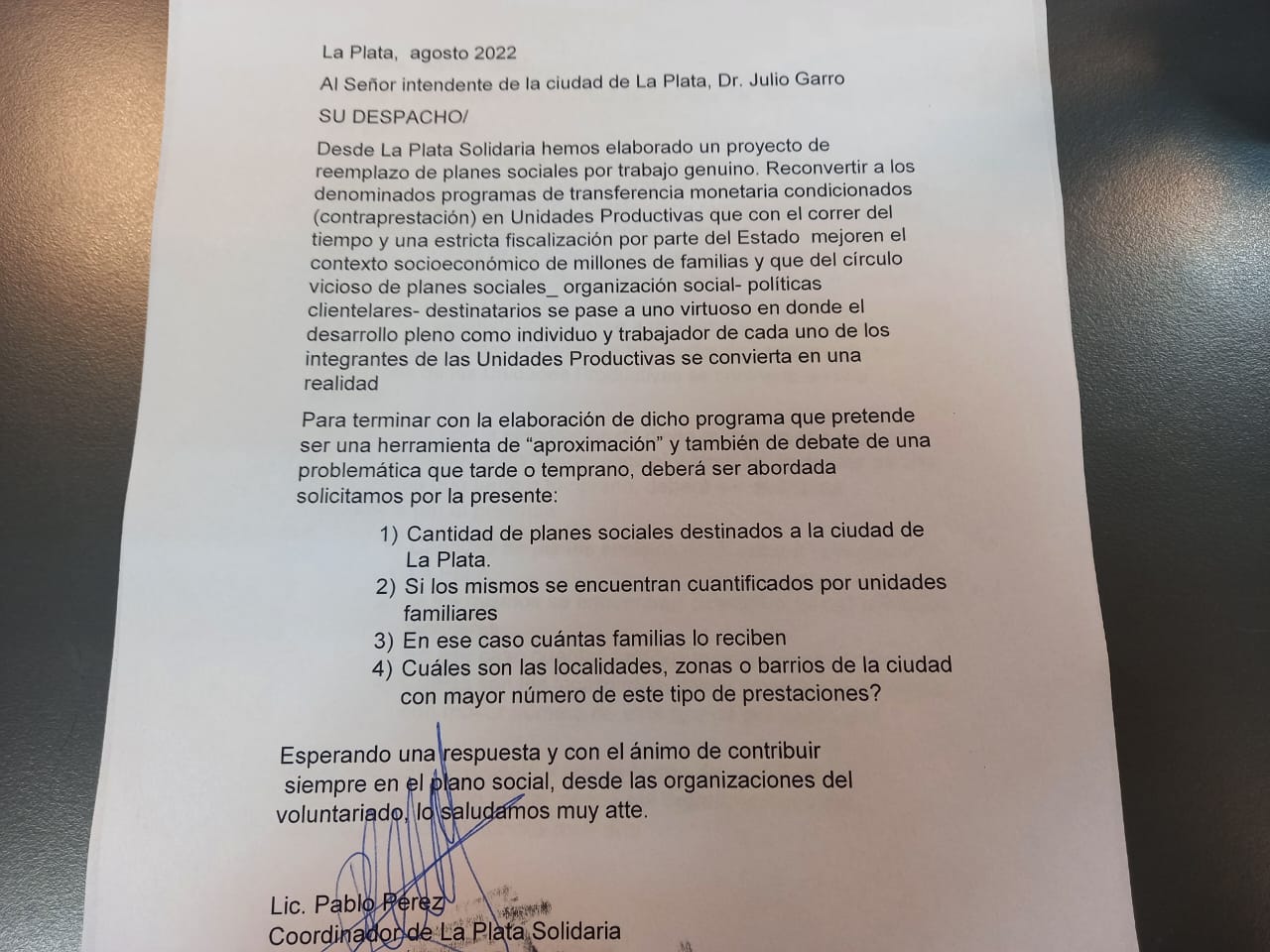 Desde La Plata Solidaria proponen un plan piloto para reemplazar planes sociales por trabajo genuino. Se trata de la creación de Unidades Productivas, con una fuerte fiscalización del Estado Municipal para terminar con las prácticas clientelares.