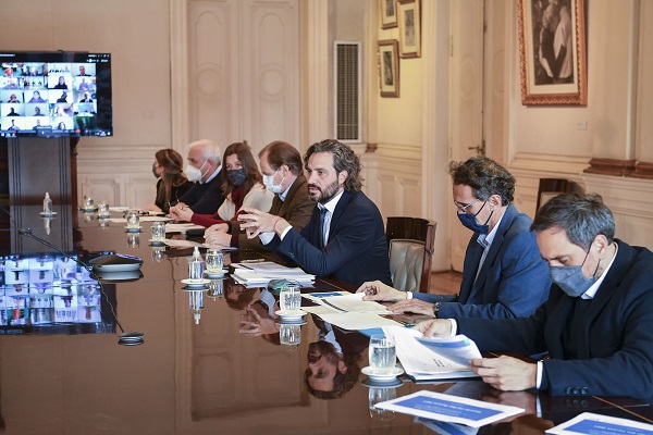 El jefe de Gabinete de Ministros de la Nación, Santiago Cafiero, encabezó en el Salón Eva Perón de la Casa Rosada, junto con la ministra de Seguridad, Sabina Frederic; los titulares de Ambiente y Desarrollo Sostenible, Juan Cabandié; de Obras Públicas, Gabriel Katopodis y funcionarios del Ministerio del Interior, una nueva reunión del comité de crisis permanente que se conformó para monitorear la bajante histórica del Río Paraná, que está sufriendo su peor momento de los últimos 77 años.