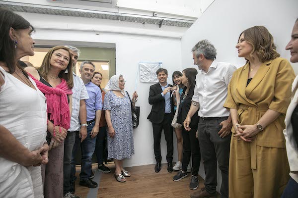 El gobernador de la provincia de Buenos Aires, Axel Kicillof, encabezó este lunes el acto de inauguración formal del auditorio "Hebe de Bonafini" en la sede de la Subsecretaría de Derechos Humanos bonaerense, junto al subsecretario Matías Moreno y la integrante de la Asociación Madres de Plaza de Mayo Carmen Arias.
