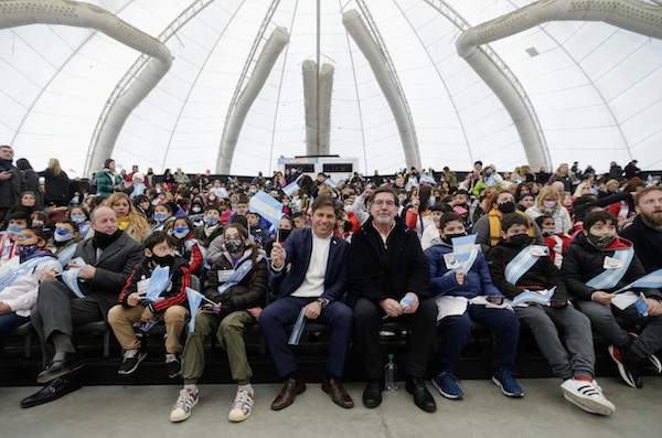 El gobernador de la provincia de Buenos Aires, Axel Kicillof, encabezó esta mañana en Tecnópolis el acto de promesa de lealtad a la Bandera Nacional por parte de alumnos y alumnas de escuelas primarias bonaerenses, junto al director general de Cultura y Educación, Alberto Sileoni.