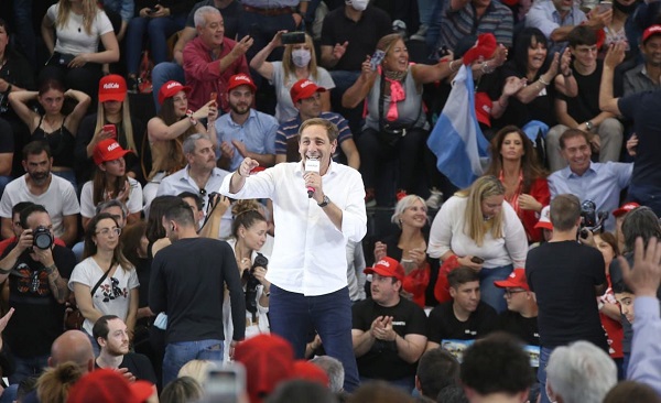 El intendente de La Plata, Julio Garro, fue el anfitrión durante el acto de cierre de campaña de la lista de Juntos que encabeza Diego Santilli, el cual se desarrolló en el Club Atenas.