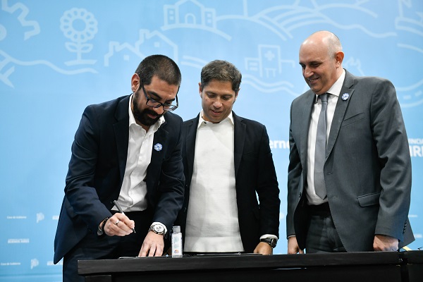 En el marco del Plan 6 por 6 para la recuperación y la transformación de la provincia de Buenos Aires, el gobernador Axel Kicillof suscribió convenios que permitirán fortalecer la infraestructura de los puertos de Bahía Blanca y Coronel Rosales. Fue en el Salón Dorado de la Casa de Gobierno, junto al ministro de Transporte de la Nación, Alexis Guerrera; y su par provincial de Producción, Ciencia e Innovación Tecnológica, Augusto Costa.