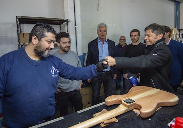 Kicillof recorrió las nuevas instalaciones de la empresa de instrumentos musicales Tevelam