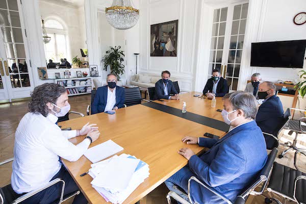 El jefe de Gabinete de Ministros de la Nación, Santiago Cafiero, encabezó este mediodía en su despacho de Casa Rosada, un encuentro del que participaron los ministros de Obras Públicas de la Nación, Gabriel Katopodis y de Desarrollo Territorial y Hábitat, Jorge Ferraresi, junto a los intendentes bonaerenses Mariano Cascallares, de Almirante Brown; Gustavo Menéndez, de Merlo; Alberto Descalzo, de Ituzaingó y Martín Insaurralde, de Lomas de Zamora.