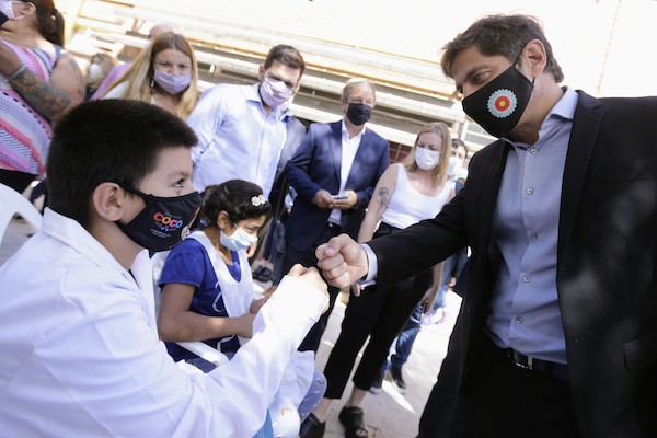 Kicillof visitó un operativo de vacunación escolar en barrio Don Orione