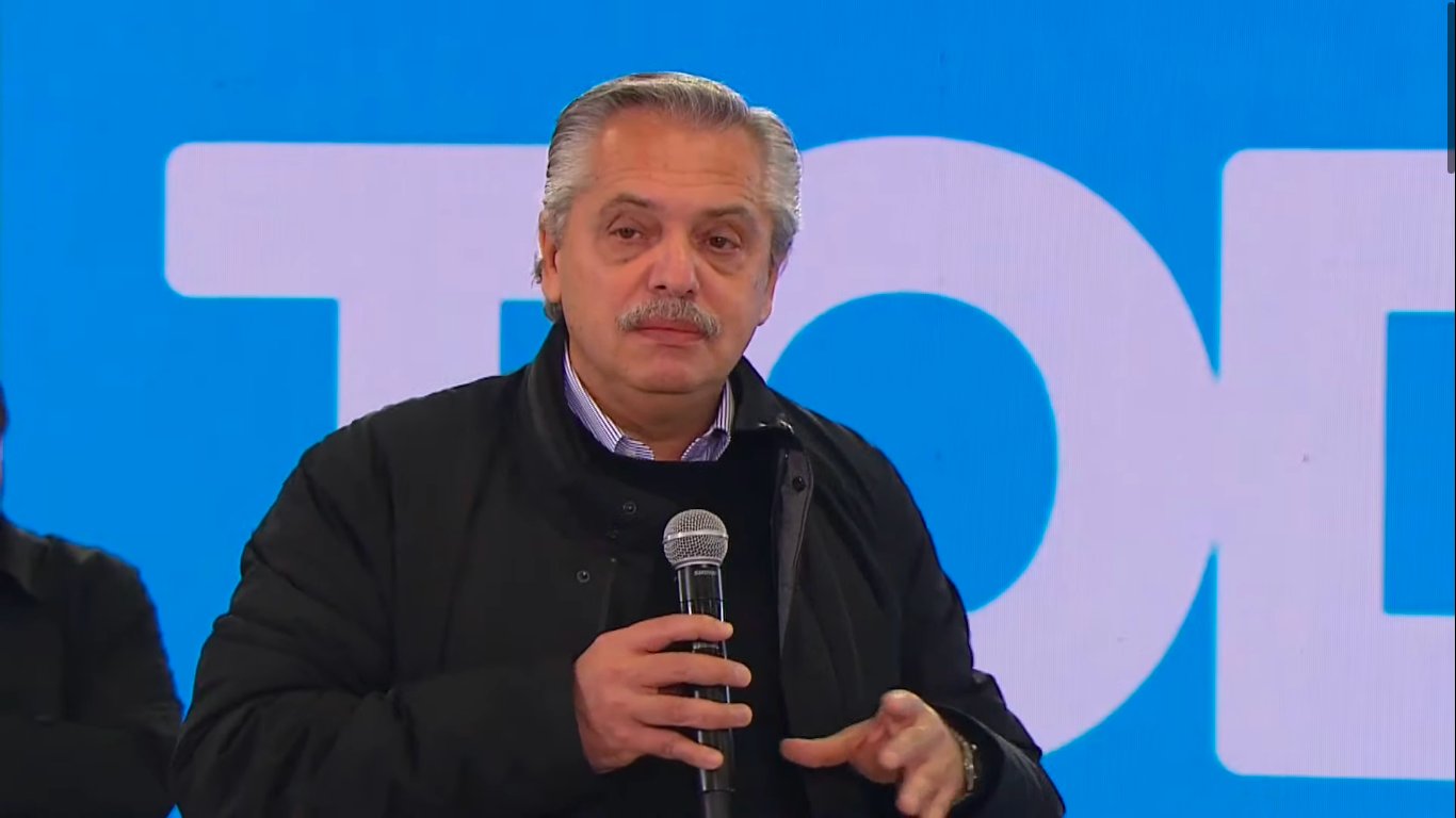 El Presidente está cerrando el acto de presentación de candidatos de ciudad y provincia de Buenos Aires del Frente de Todos en la fabrica Queruclor, del partido bonaerense de Garín. Antes se expresaron Axel Kicillof y Sergio Massa.