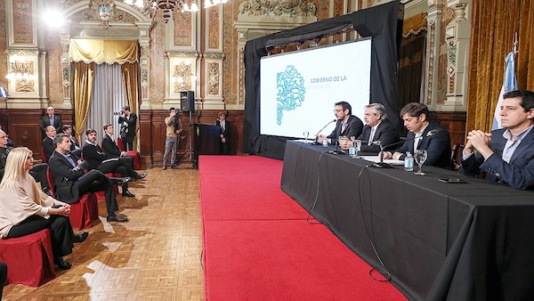 El presidente Alberto Fernández mantiene, junto al ministro de Relaciones Exteriores, Comercio Internacional y Culto, Felipe Solá, una reunión mediante videoconferencia con miembros del Grupo de Puebla para analizar el impacto del Coronavirus COVID-19 en la región latinoamericana y el mundo.