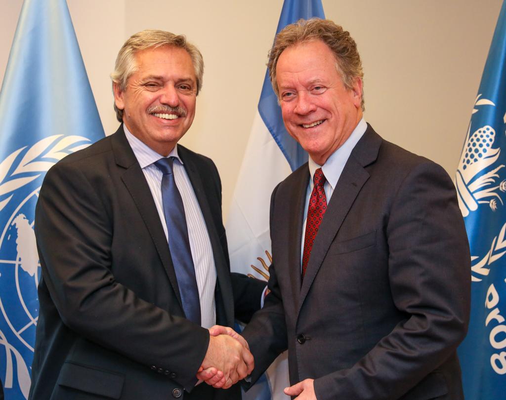 En su primera actividad en Italia, el presidente Alberto Fernández se reunió con el director ejecutivo del Programa Mundial de Alimentos de Naciones Unidas, David Beasley, en la sede del organismo que se encarga de llevar adelante el Plan Hambre Cero.