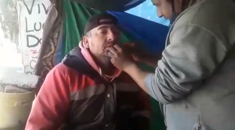 En el marco de una nueva jornada de lucha por la recuperación de sus puestos de trabajo la policía salteña, en un operativo desmedido, se llevó detenido a Ramiro Frías, delegado de los trabajadores mineros. Ramiro, se encontraba desarrollando una huelga de hambre seca desde el día de ayer cuando decidió coserse la boca.