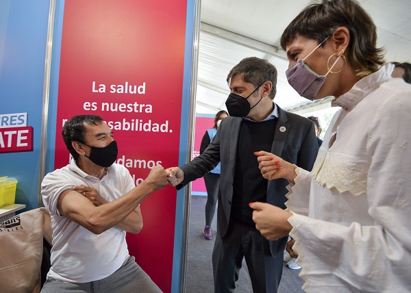 Kicillof y Mendoza visitaron el operativo de vacunación en el parque cervecero