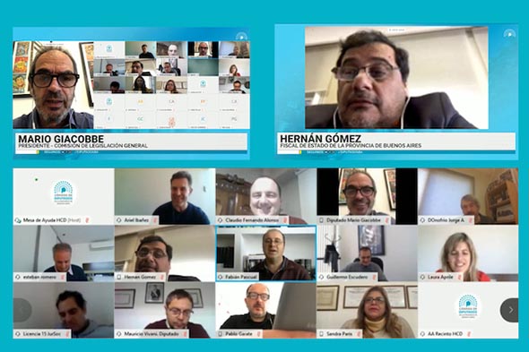El fiscal de Estado de la provincia de Buenos Aires, Hernán Gomez, fue convocado por la Comisión de Legislación General, presidida por Mario Giacobbe. Durante el encuentro el funcionario y su equipo explicaron en detalle todos los mecanismos que se ponen en marcha para llevar a cabo una expropiación. La reunión se realizó de manera virtual en el marco del aislamiento social y preventivo en el marco de la Pandemia.