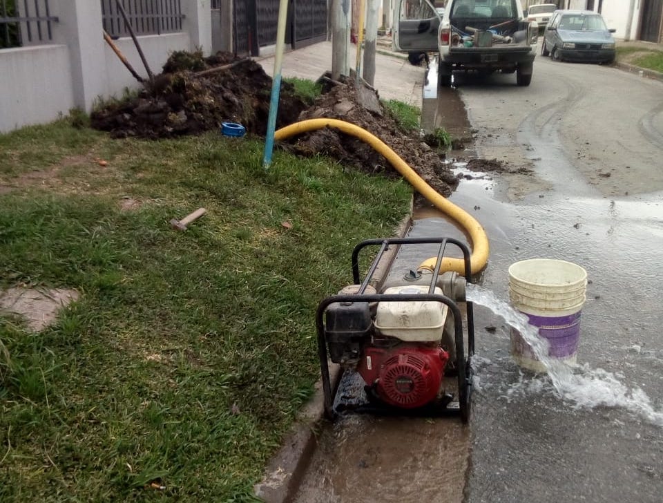 ABSA informa que una cuadrilla de operarios está reparando una cañería de la red de agua de 200 milímetros en la intersección de las calles Comandante Vergara y Mosconi, en Ensenada.