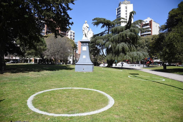 La Municipalidad de La Plata realizó este viernes demarcaciones de círculos en parques y plazas de la ciudad, con el objetivo de que los vecinos cumplan con el distanciamiento social requerido. Este fin de semana dispondrán alrededor de 600 agentes en espacios verdes. Además, piden evitar las reuniones sociales y cumplir con las medidas de prevención.