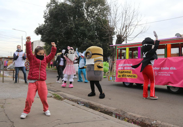 En el marco del programa de salud emocional impulsado por la Municipalidad de La Plata para los más niños, el Tren de la Alegría continúa sus recorridas por las calles de la ciudad para hacer que chicos y chicas disfruten de una tarde diferente ante el contexto de aislamiento por la pandemia. Con divertidas canciones infantiles y bailes, enseñan medidas de concientización.