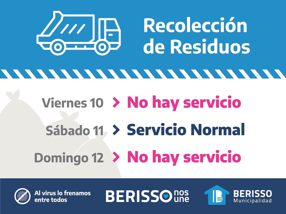 La Municipalidad de Berisso informa sobre la prestación del servicio de recolección durante los feriados por la Semana Santa y celebración de las Pascuas.