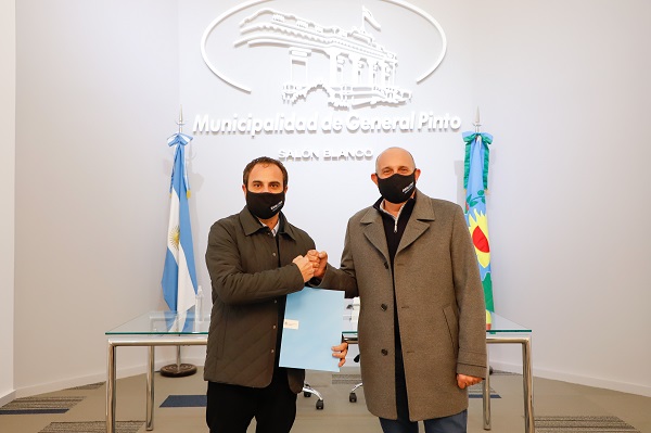 El ministro de Transporte Alexis Guerrera, avanzando con el Plan de Modernización del Transporte, firmó hoy con el intendente de General Pinto, Alfredo Zavatarelli, un convenio de asistencia técnico y financiera para la construcción de un parador de Ómnibus en Pinto. La firma se realizó en el marco de la visita del Ministro Guerrera a la ciudad para acompañar al gobernador Kicillof en la entrega de viviendas y en la reactivación de obras paralizadas en Pinto.