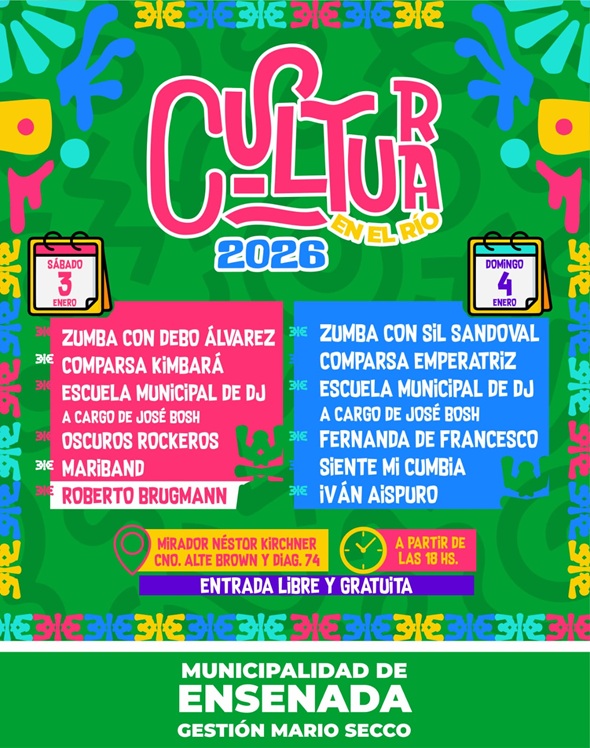 La Municipalidad de Ensenada invita a la comunidad a disfrutar de una nueva edición de Cultura en el Río, que se desarrollará este fin de semana en Punta Lara.
