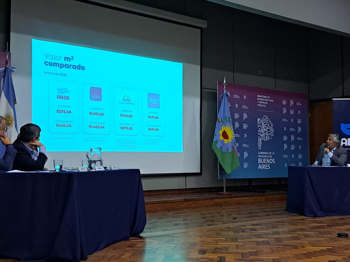 La empresa Aguas Bonaerenses S.A. (ABSA) informó los fundamentos técnicos, económicos, financieros y jurídicos de la adecuación de su régimen tarifario durante las dos audiencias públicas realizadas esta mañana en el Salón Auditorio del Ministerio de infraestructura y Servicios Públicos de la Provincia de Buenos Aires.