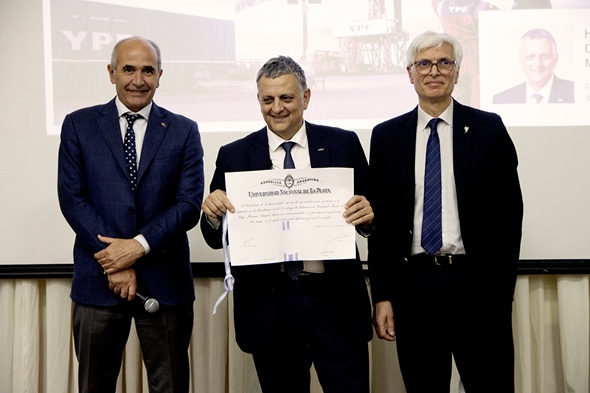 El reconocimiento fue otorgado por la Facultad de Ingeniería de la Universidad Nacional de La Plata (UNLP), de donde Horacio Daniel Marín egresó como ingeniero químico en el año 1988, tras cinco años de carrera. El presidente & CEO de YPF S.A recibió la importante distinción por su prestigiosa trayectoria en el Edificio Central de la unidad académica, “lugar donde empezaron mis sueños”, expresó.