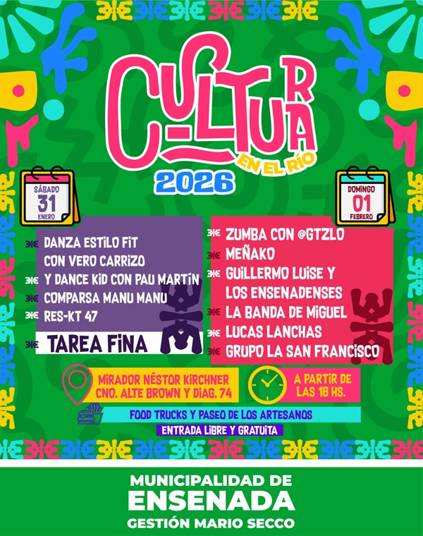 La Municipalidad de Ensenada invita a la comunidad a disfrutar de una nueva edición de Cultura en el Río, que se desarrollará este fin de semana en Punta Lara.