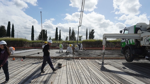 Esta semana se inició el hormigonado de la base de la cisterna de 30 millones de litros ubicada en el predio de Planta Patagonia. En ese mismo lugar, también se montará una nueva estación de bombeo y es punto de inicio del tendido de un acueducto de 8200 metros hacia Bosque Alto.