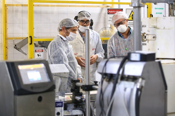El gobernador de la provincia de Buenos, Axel Kicillof, visitó esta tarde la planta productiva de la empresa Dánica que reanudó su producción este sábado tras el diálogo entre el Gobierno provincial, los directivos de la compañía y el gremio SOEIA.