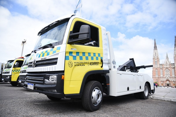 El intendente Julio Garro presentó hoy seis nuevas grúas de acarreo que se pondrán en funcionamiento el próximo mes con el objetivo de garantizar el correcto cumplimiento de la normativa vial y ordenar el tránsito en la ciudad. “Nuestro objetivo es seguir disminuyendo las muertes por accidentes viales y generar mayor conciencia en los platenses”, valoró el mandatario.